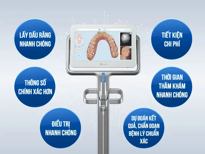 Công nghệ mới sử dụng máy quét dấu hàm iTero 5D, thay vì phương pháp truyền thống với silicon, đã vượt qua nhược điểm của phương pháp trước đó. Máy scan bằng laser tạo ra hình ảnh đa chiều của toàn bộ hàm răng, mô miệng, cấu trúc hàm, và khớp cắn, cung cấp thông tin chi tiết giúp bác sĩ đánh giá chính xác tình trạng sức khỏe răng miệng và đưa ra quyết định điều trị hiệu quả nhất. Dữ liệu từ máy iTero 5D có thể lưu trữ và truyền đến máy tính để thiết kế thiết bị chỉnh nha và phục hình một cách chính xác. Ngoài ra, thông số từ máy cũng có thể được chuyển đến phần mềm Clincheck để mô phỏng quá trình điều trị và dự đoán kết quả hàm răng trong tương lai.