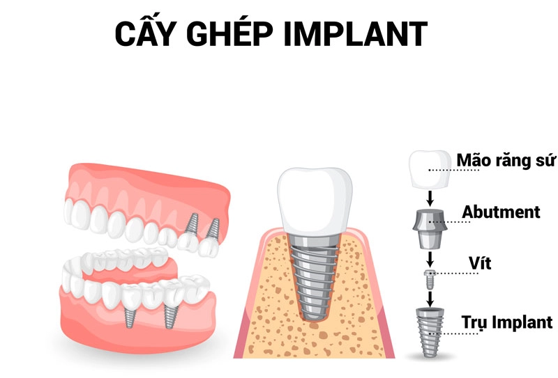 Răng Implant đại diện cho một bước đột phá trong nha khoa hiện đại, mang lại cơ hội phục hình toàn diện cho nụ cười và sức khỏe răng miệng. Để hiểu rõ hơn về sự hoàn hảo của quy trình cấy ghép Implant, chúng ta sẽ cùng khám phá cấu trúc phức tạp của chúng, bao gồm ba phần quan trọng: trụ răng, khớp nối và thân răng sứ.